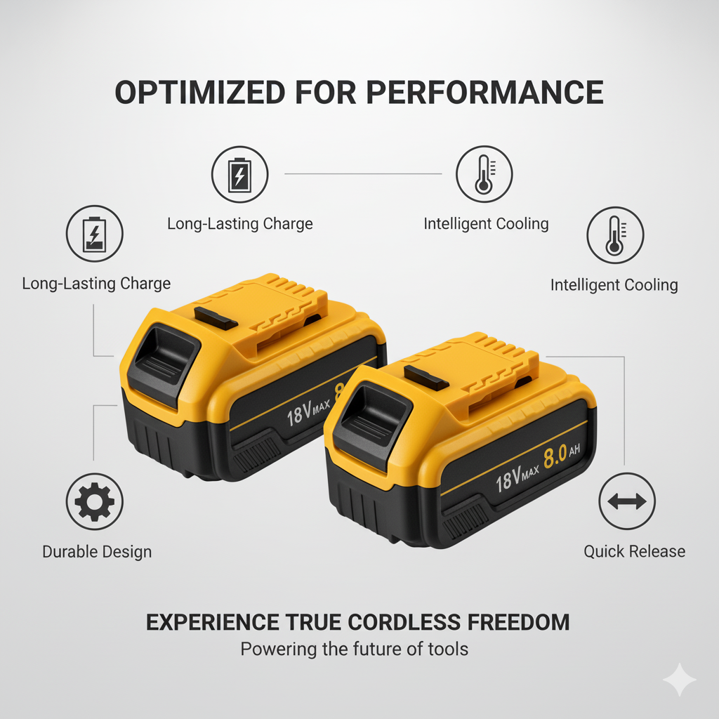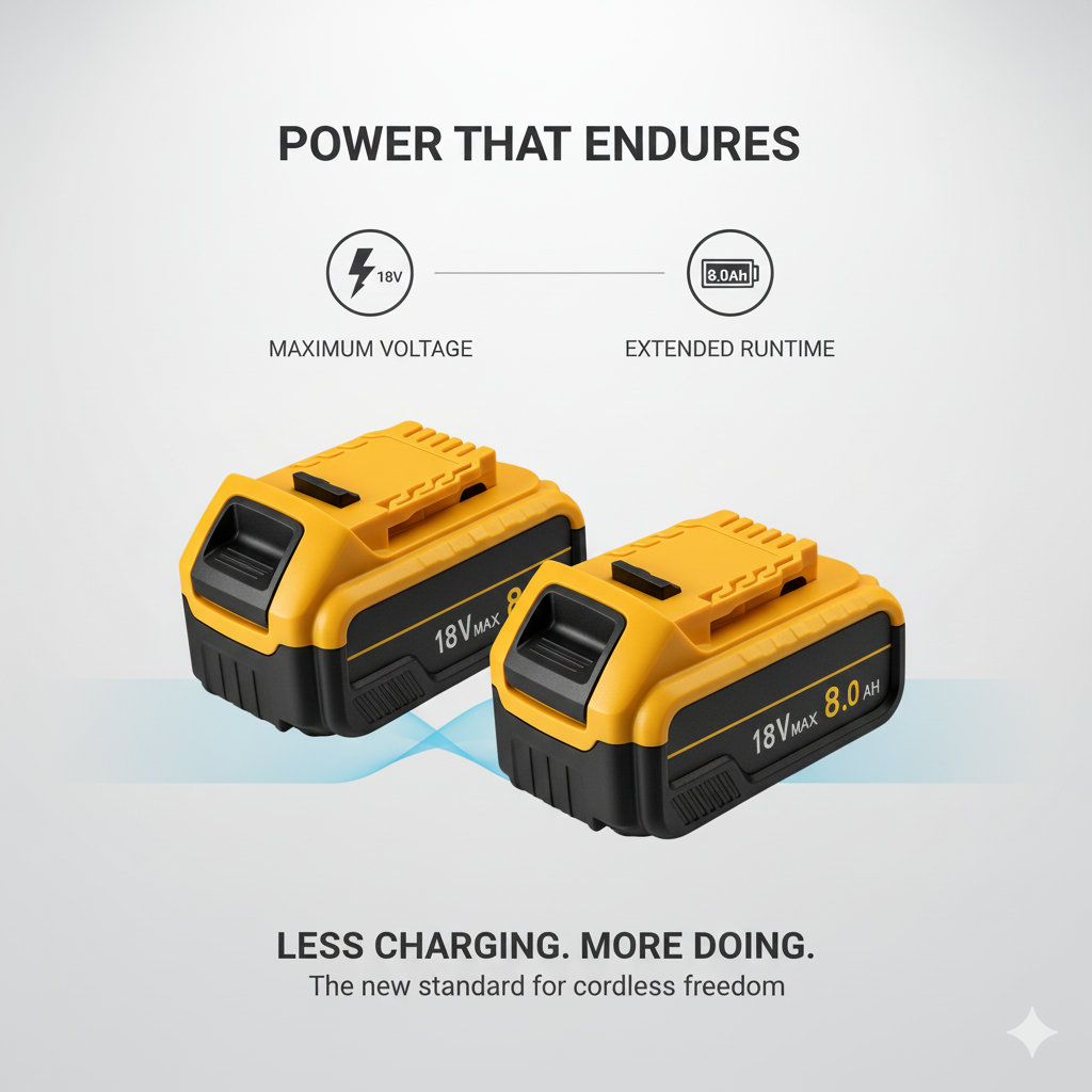 Elevate your DIY and professional projects with high-capacity batteries designed for uninterrupted power and compatibility with Dewalt's 18V XR tools. Experience exceptional performance with every charge, ensuring you stay productive throughout the day.